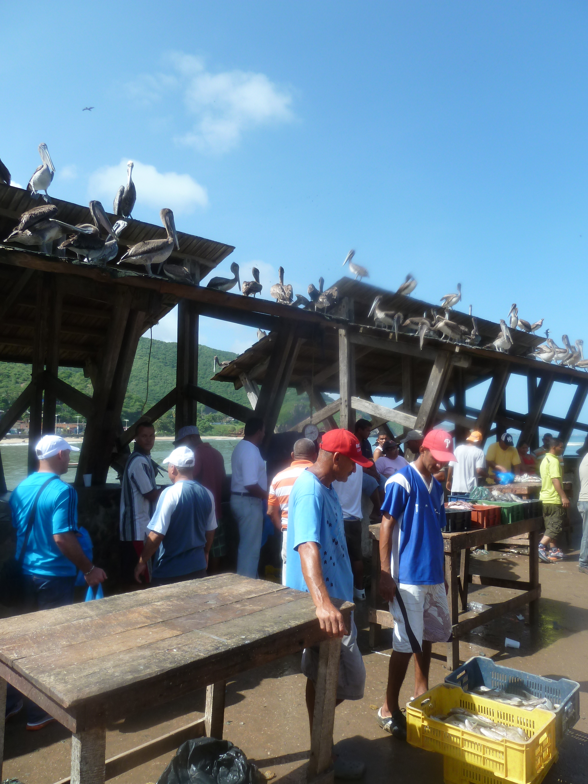 El mercado de Río Caribe es un imperdible con sus pelícanos deambulando como un lugareño más. La simpatía del oriental explicando el arte de la pesca y retratándose entre los cazones que serán guiso para la empanada o la tortilla.