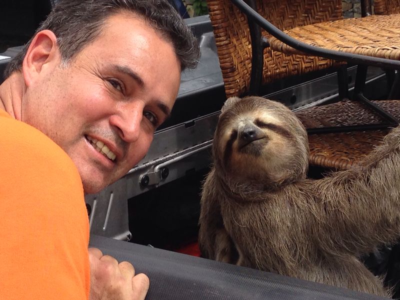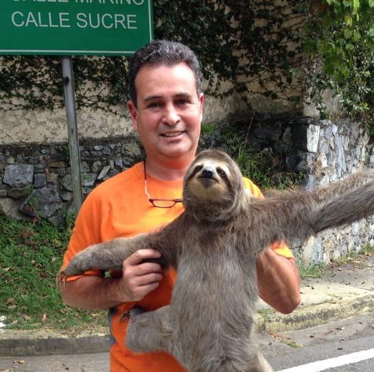 El destino nos dio la oportunidad de salvar una pereza macho de tres garras y peculiar dorso naranja, cruzando una calle capital; en compañía de Johnny, mi “brother” canadiense.
