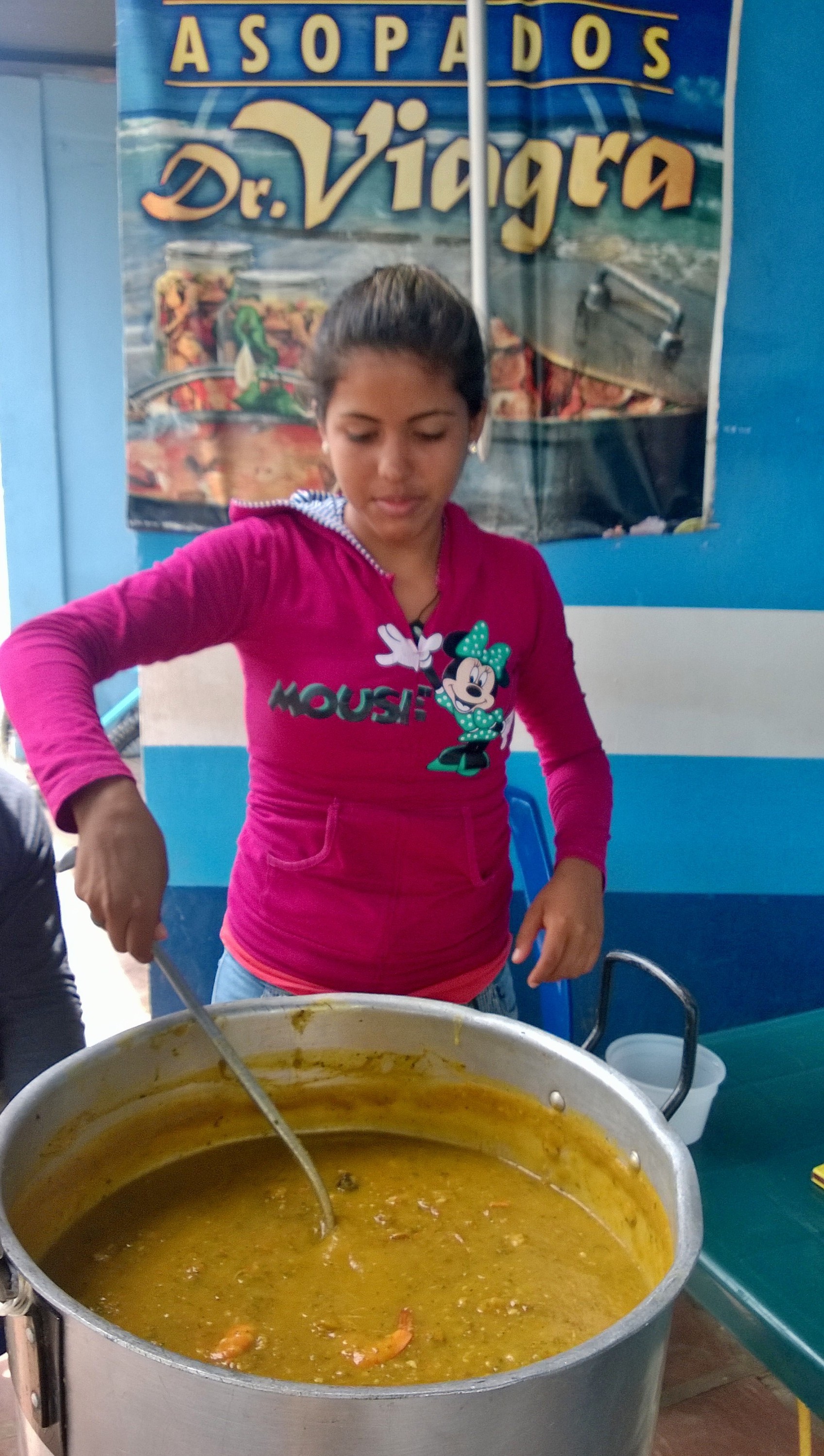 Bordeamos Carúpano desde Playa Patilla hasta Playa Grande, pasando por Los Uveros, Los Martínez, Güiria de la Playa y Copacabana, para luego adentrarnos en la Paria de El Morro, Rio Caribe, Pui Pui y Medina. Patilla y Copey conservan sus encantos. Patilla con sus cujíes y cocoteros; donde otrora abundaba la patilla y la auyama que acompañaban el fruto de la pesca; y Copey con su singular morro y laguna de flamencos. Mientras que Copacabana (también conocida como Garrapata) tiene una entrada que desalienta, invadida por latones y afiches politiqueros que buscan impunidad ante cualquier medida de ordenamiento o desalojo. El “vuelve a la vida” se ha sofisticado. En la playa y sus alrededores ofrecen un asopado con arenga afrodisiaca. El mismo ebulle en las ollas sancocheras. Es un potaje con base de auyama. Sin proponérnoslo tuvimos una experiencia “gourmet” en Casa Blanca. Un restaurant-posada especializado en paella ubicado en la avenida principal de Playa Copey. Su dueño es José María Carrión, un español orgulloso a más no poder, de su sazón y atención. No le falta razón. Sin lugar a dudas tiene con qué. Degustamos la Paella, precedida por unos langostinos al ajillo y tostones con aguacate. El y su señora se encargan de todo. Eso sí, se recomienda reservar por un tema de seguridad y para que la comida no se demore, ya que se hace al momento.
