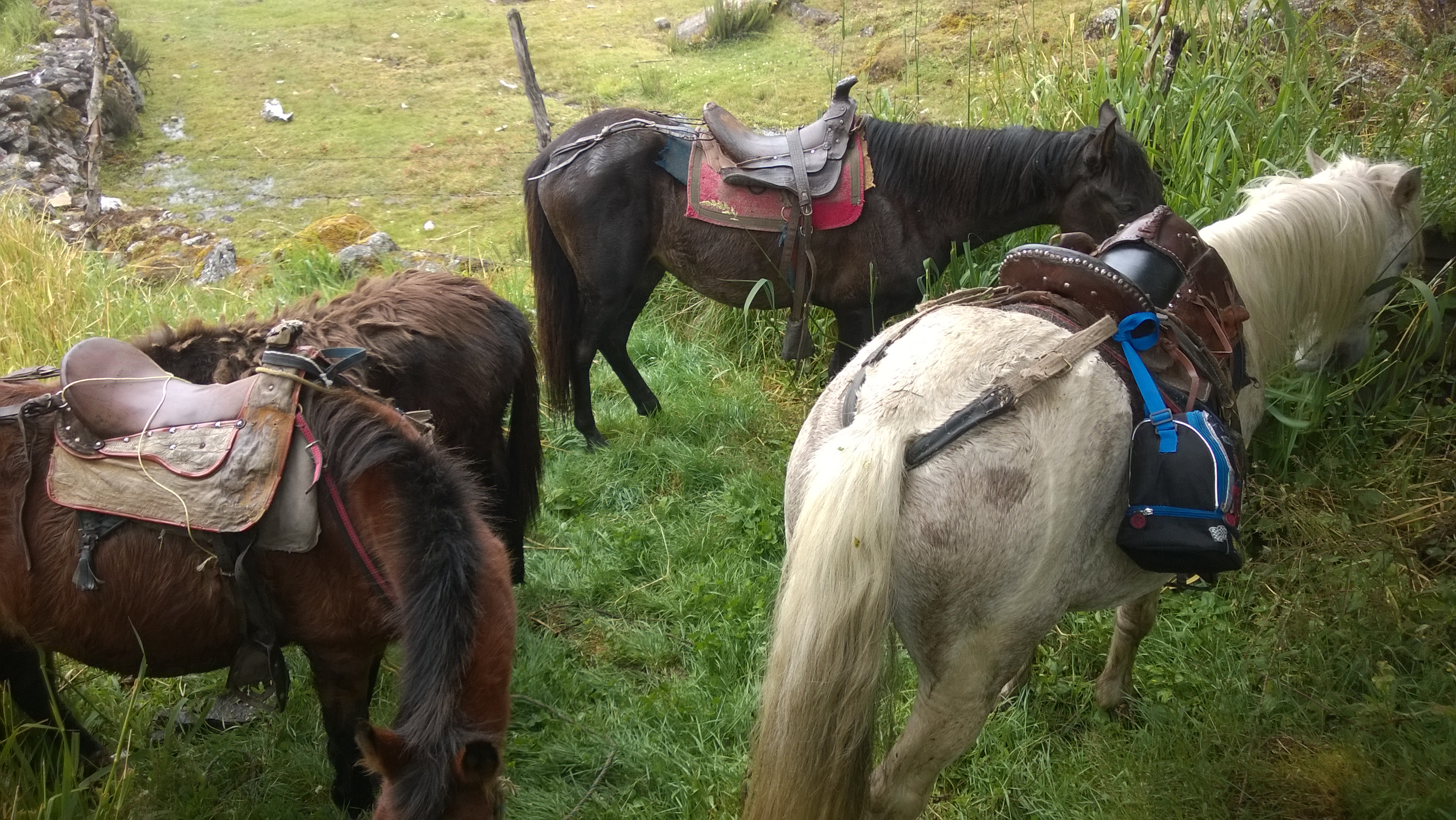 Nos acompañó una mulita de 8 meses aun sin herraduras (Es herrada a partir de los dos años), que acompañaba a su madre. Era su segundo viaje, preparándose para la faena. A punta de coz impedía que cualquier otra bestia se aproximara a su progenitora.