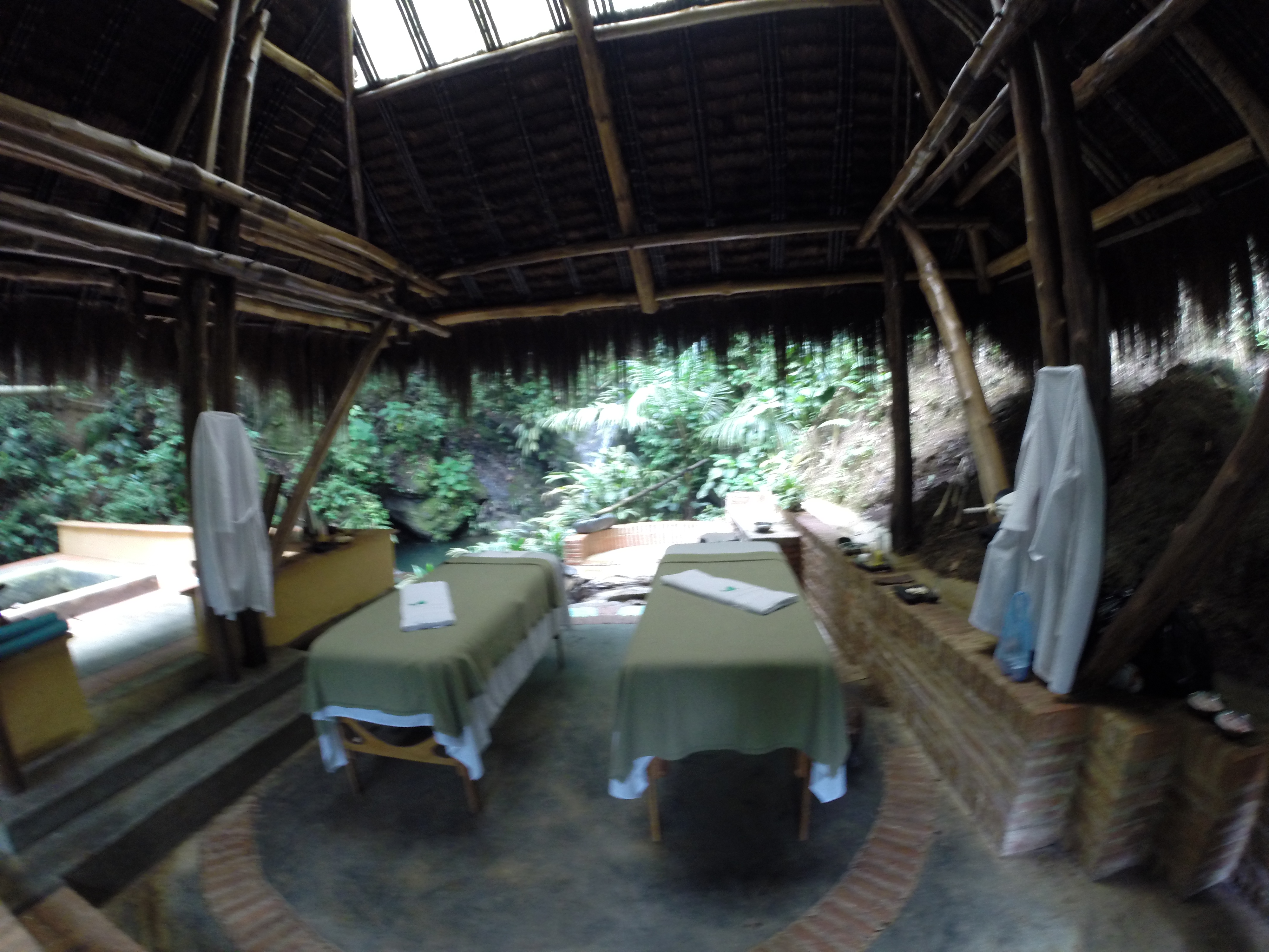 El Spa está al pie de una poza que desciende en raudales. Supera todas las expectativas. Comenzamos con respiraciones, luego un té tonificante, exfoliación con avena y miel, inmersión y masaje de cascada, agua «cálida» para despegar el frío. Luego pasamos a la camilla, y nos entregamos de la cabeza a los pies a los masajes “esenciosos” de María Gabriela y Eva. Se los recomiendo desde el cuerpo y el alma.