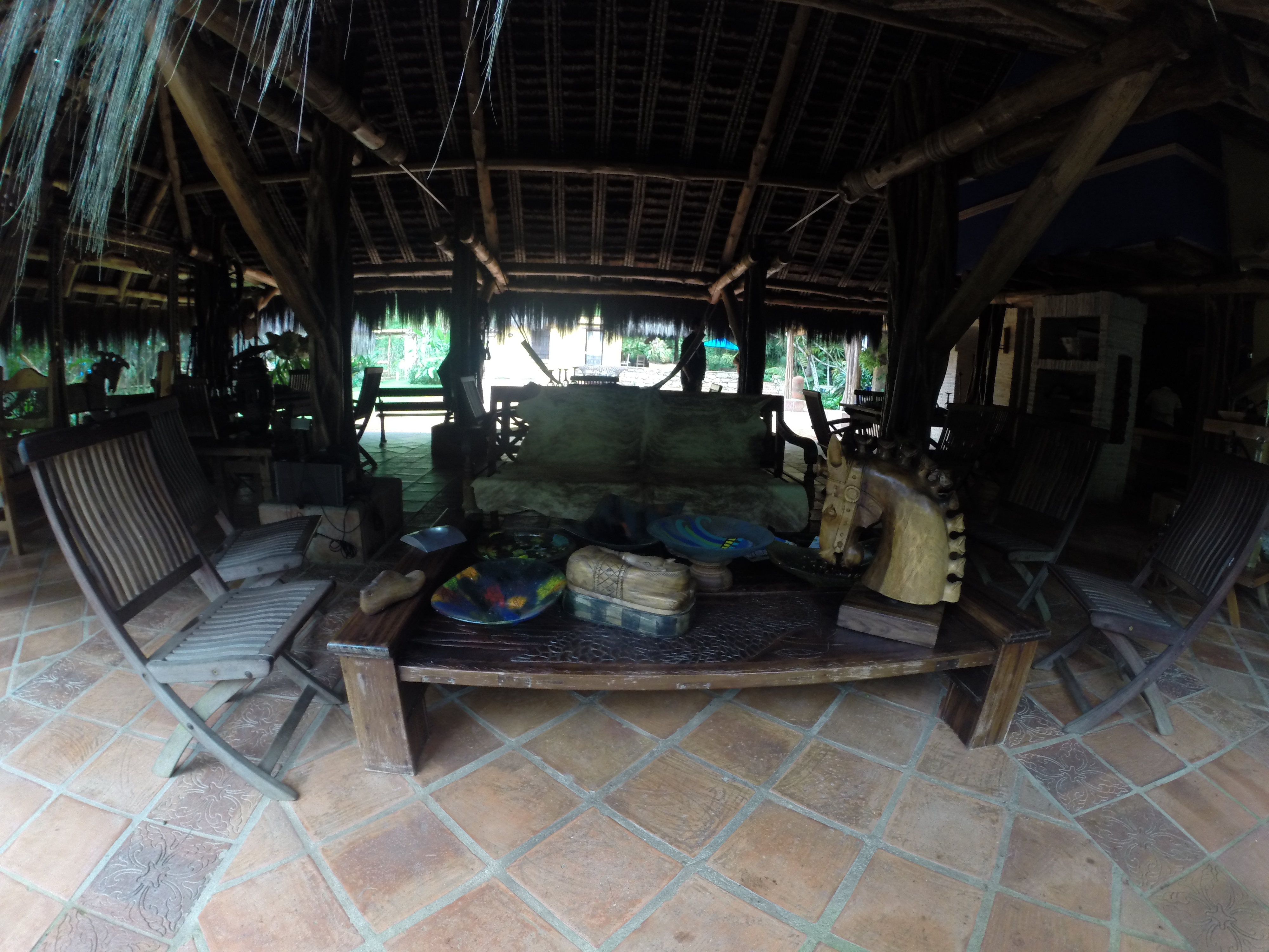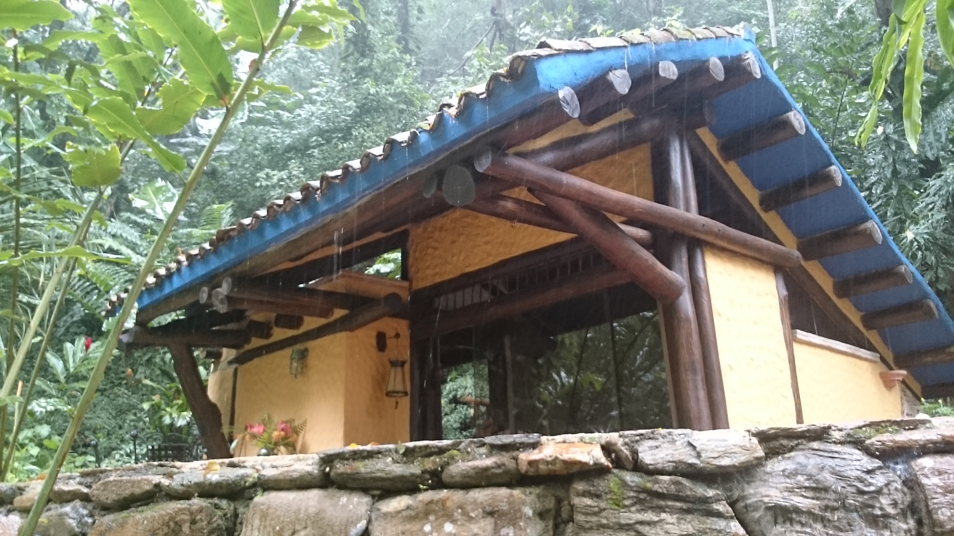 Las cabañas son parte de la naturaleza. La ducha esta al aire libre, y viene de manantial. El centro piso es una piedra de Molino. Son apenas 4 hospedajes: una matrimonial con camita extra (El Chalet), una de 7 puestos (La casa de los abuelos), y cerca del área común, una de 2 habitaciones (Patio del Café) y una matrimonial con camita adicional (El Ático de Juliana). Cada cabaña, el área del comedor y el «lounge» están decorados con un gusto exquisito. Muchas reliquias mimetizadas con espacios abiertos.